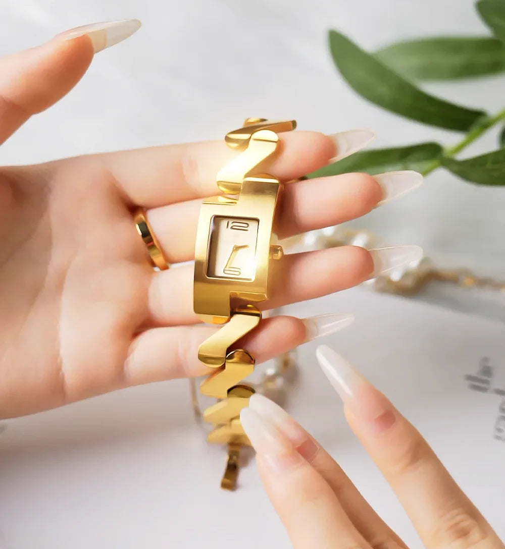 صُمّمت هذه الساعة بعناية في سويسرا لتجسّد الفخامة والأناقة عبر تفاصيلها الفريدة المصنوعة من الفولاذ المقاوم للصدأ المطلّي بالذهب وزجاجها المقاوم للخدش. مجهّزة بحركة ميكانيكية ذات عمر افتراضي استثنائي، فإنها لا تقتصر على تحديد الوقت فحسب، بل تمثل رمزًا حقيقيًا للرفاهية والتميّز، مما يجعل صاحبها علامة فارقة في عالم الرقي. بالإضافة إلى ذلك، تتماشى هذه الساعة مع أحدث صيحات الموضة، لتضفي لمسة عصرية على جاذبيتها الخالدة.